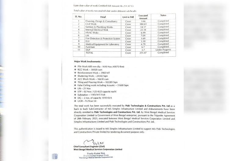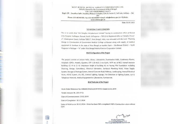 Planning, Design & Constructions Work of BARASAT GOVT. MEDICAL COLLEGE PROJECT, Location: BARASAT, KOLKATA, Client: SIMPLEX / WBMSCL, Project Cost: 255.00 crores.